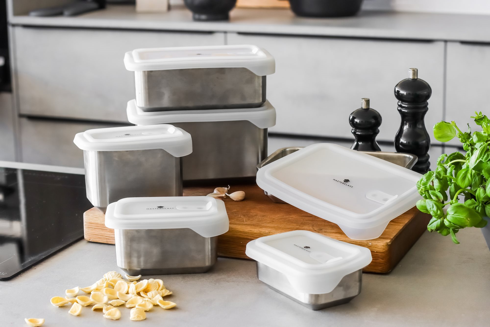 Aceasta caserola all-in-one, marca MasterClass, este una revolutionara. Se poate gati in ea, se poate folosi la congelator sau in cuptorul cu microunde si de asemenea se poate servi masa din ea.