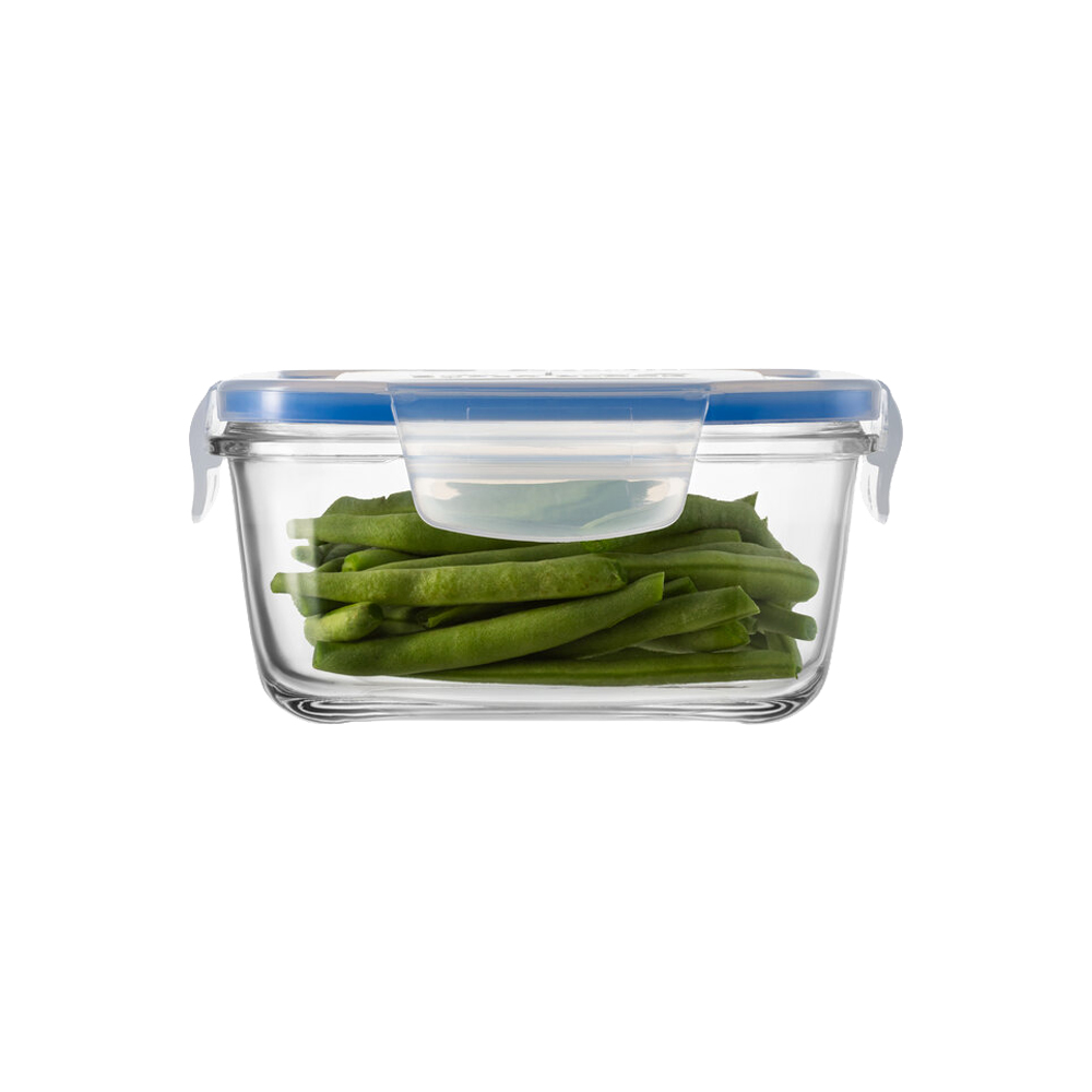 Caserola rectangulara cu capac, marca Borgonovo, 1,4 L capacitate, dimensiuni 17 x 17 x 8 cm, din sticla rezistenta la temperaturi intre -20 si +70°C.