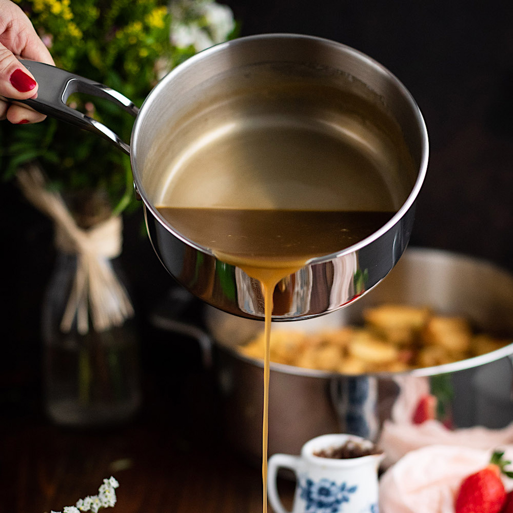 Cratita sos, marca BRA, fabricata din inox 18/10, diametru 14 cm, capacitate 1 L.