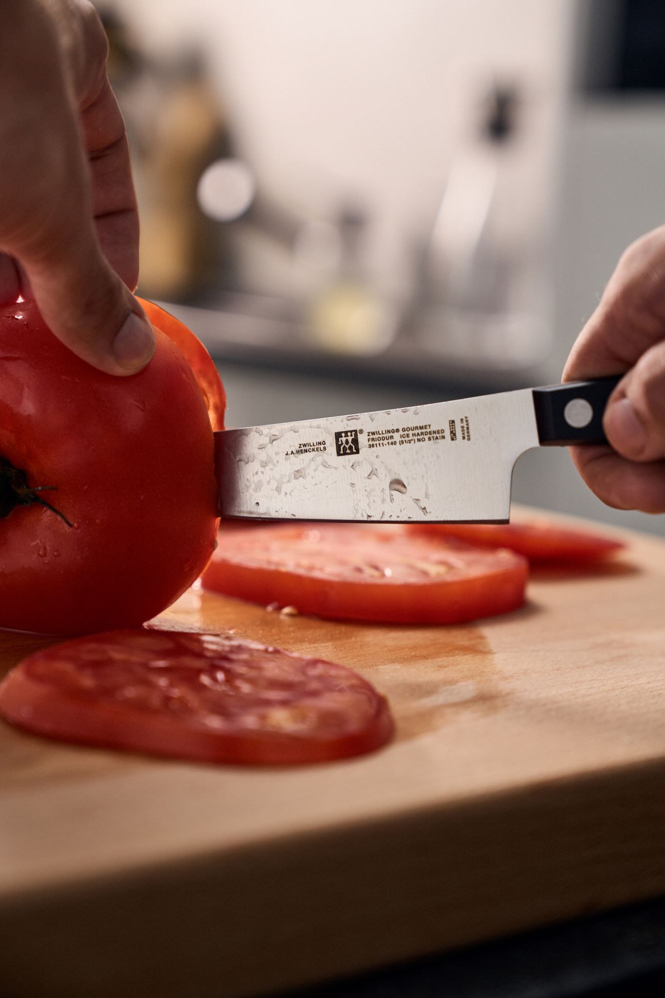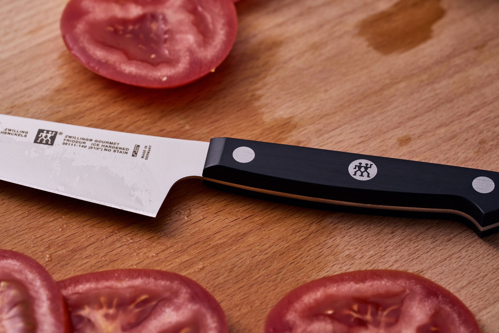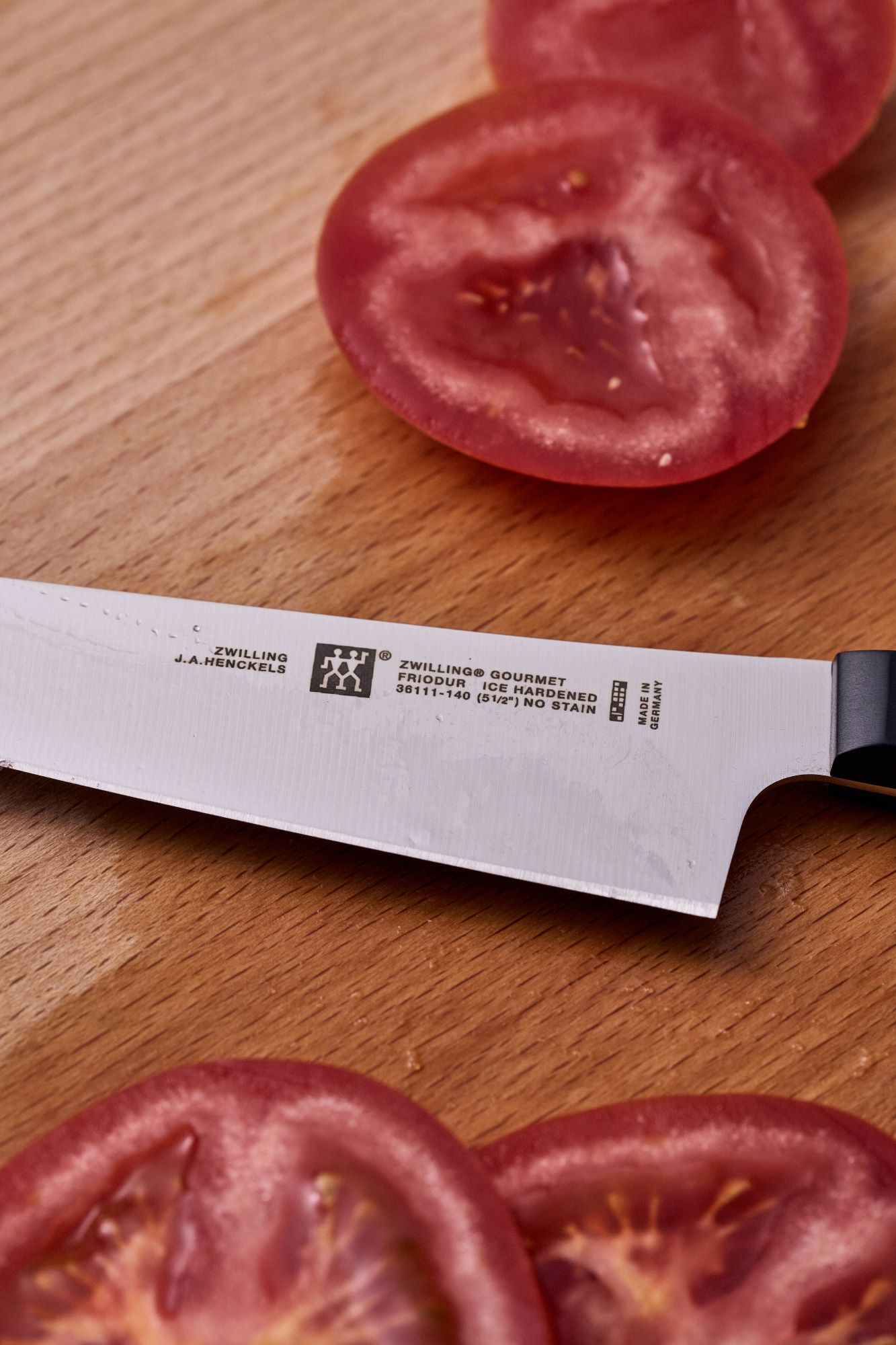Cutitul bucatarului marca Zwilling, cu lama de 14 cm lungime, fabricata din otel inoxidabil special, robusta, rezistenta la coroziune si socuri, dar flexibila in acelasi timp.
