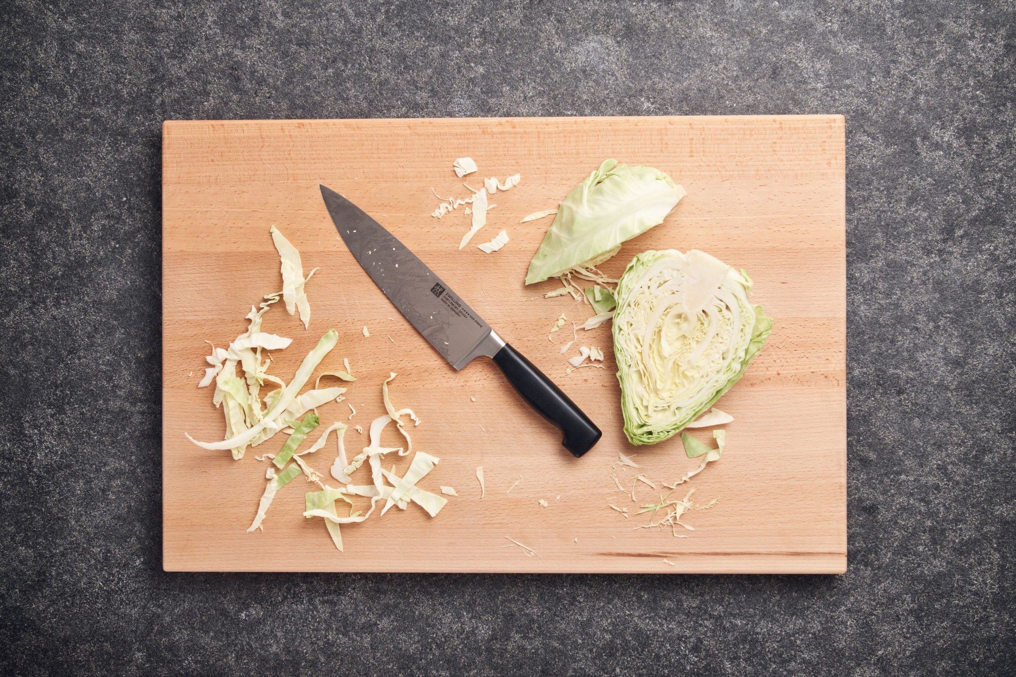 Cutitul bucatarului este cel mai utilizat cutit si te va ajuta indiferent de ingredientele cu care vei lucra. Poti sa tai, sa toci sau sa feliezi cu el legume, fructe si carnuri, fiind un cutit indispensabil oricarui bucatar, amator sau profesionist.