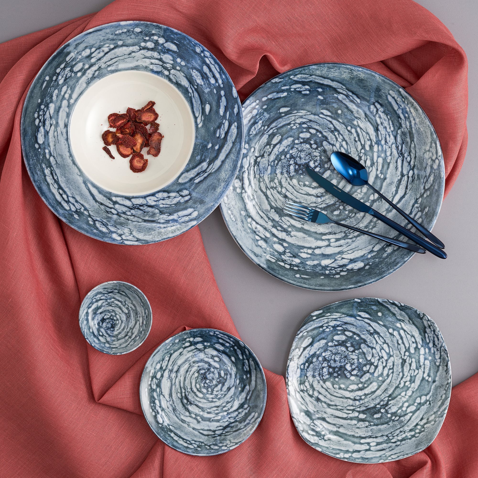 Inspirata de valurile marii, colectia Vortex va incanta oaspetii cu tonurile sale de albastru inchis si modelele sale hipnotice.