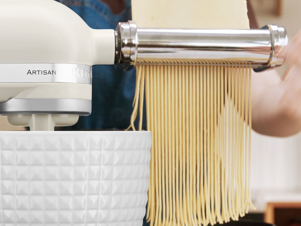 Mixerul Artisan 156 include tel, carlig pentru aluat si paleta – dar cand va simtiti extrem de creativi, puteti apela la atasamentele optionale. Alegeti dintre peste 15 atasamente (vandute separat) pentru a transforma mixerul intr-un spiralizator, robot de bucatarie, aparat de facut paste, aparat pentru preparare fulgi de gheata, aparat de umplut carnati si multe altele. Prepara panglici de dovlecel cu pesto, ravioli de casa sau slushie in cateva secunde.