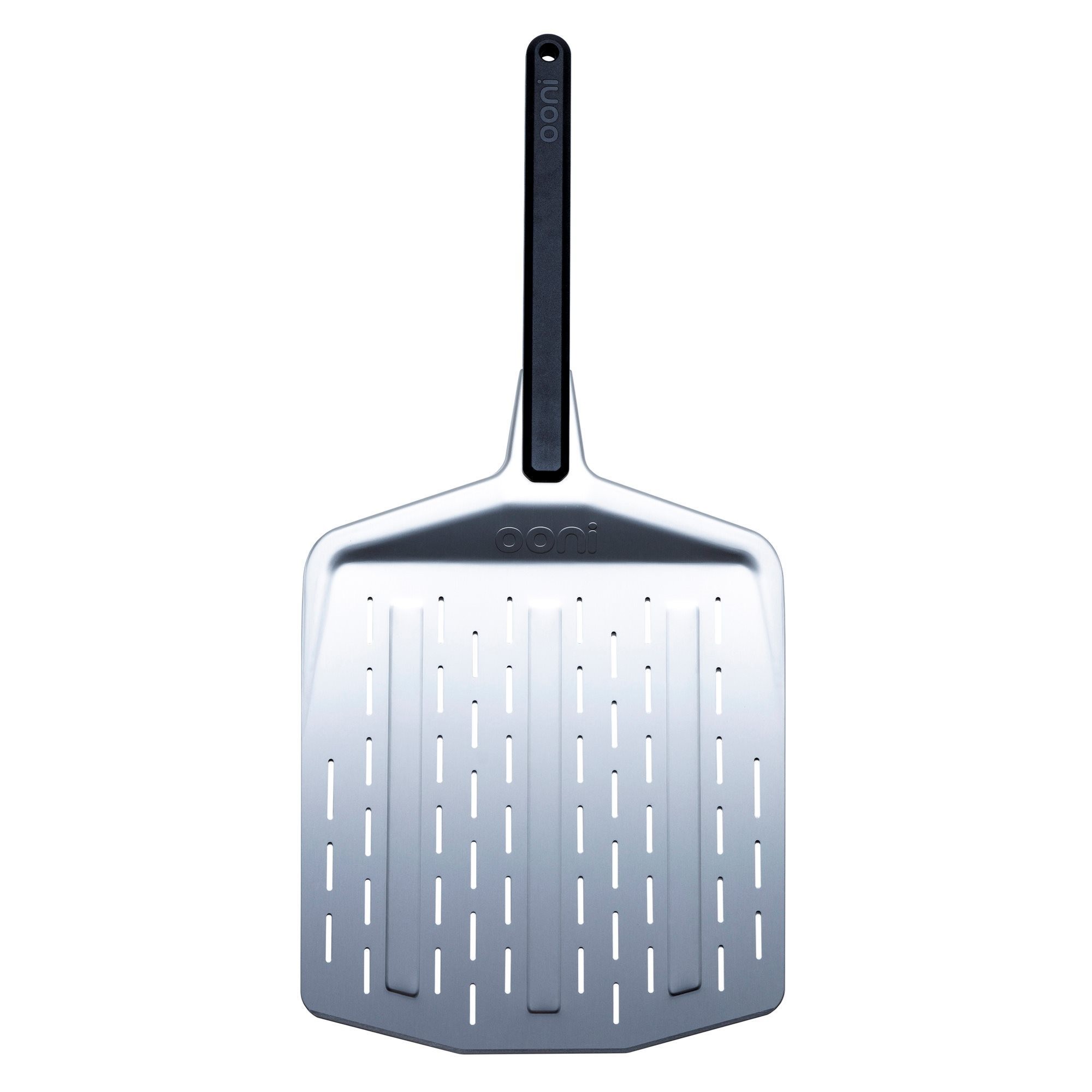 Paleta cu perforatii, marca Ooni, fabricata din aluminiu anodizat, cu o rezistenta sporita la coroziune si maner din plastic rezistent la caldura, va ajuta sa pregatiti pizza ca un adevarat profesionist.