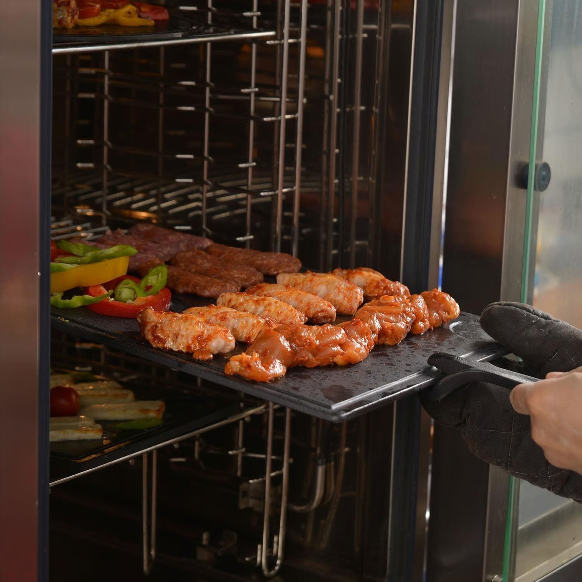 Grosimea platoului din fonta este de 5 mm. Poate fi utilizat atat pentru a pregati preparate delicioase, cat si pentru a le servi direct la masa.