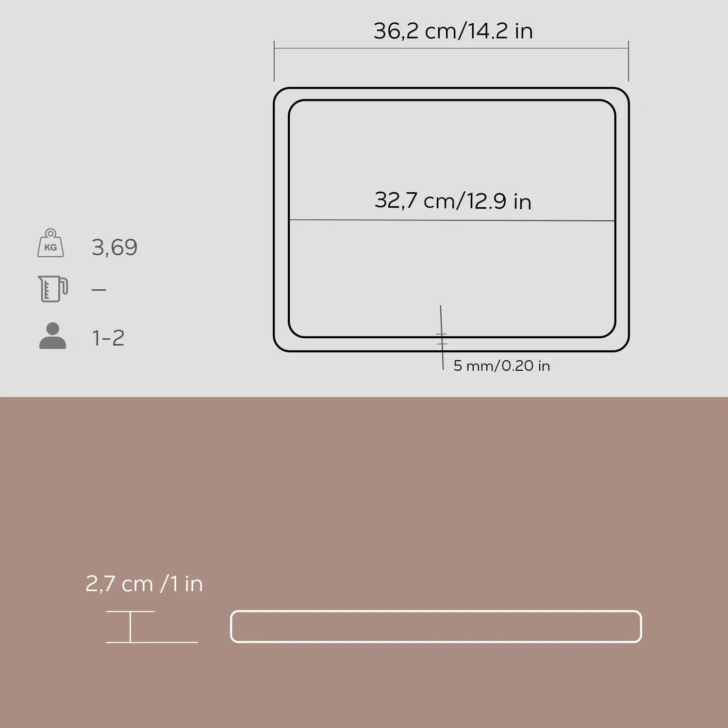 Platoul din fonta are dimensiunile 24 x 33 cm si este potrivit pentru 1-2 portii.