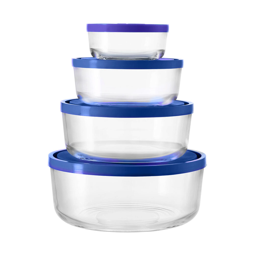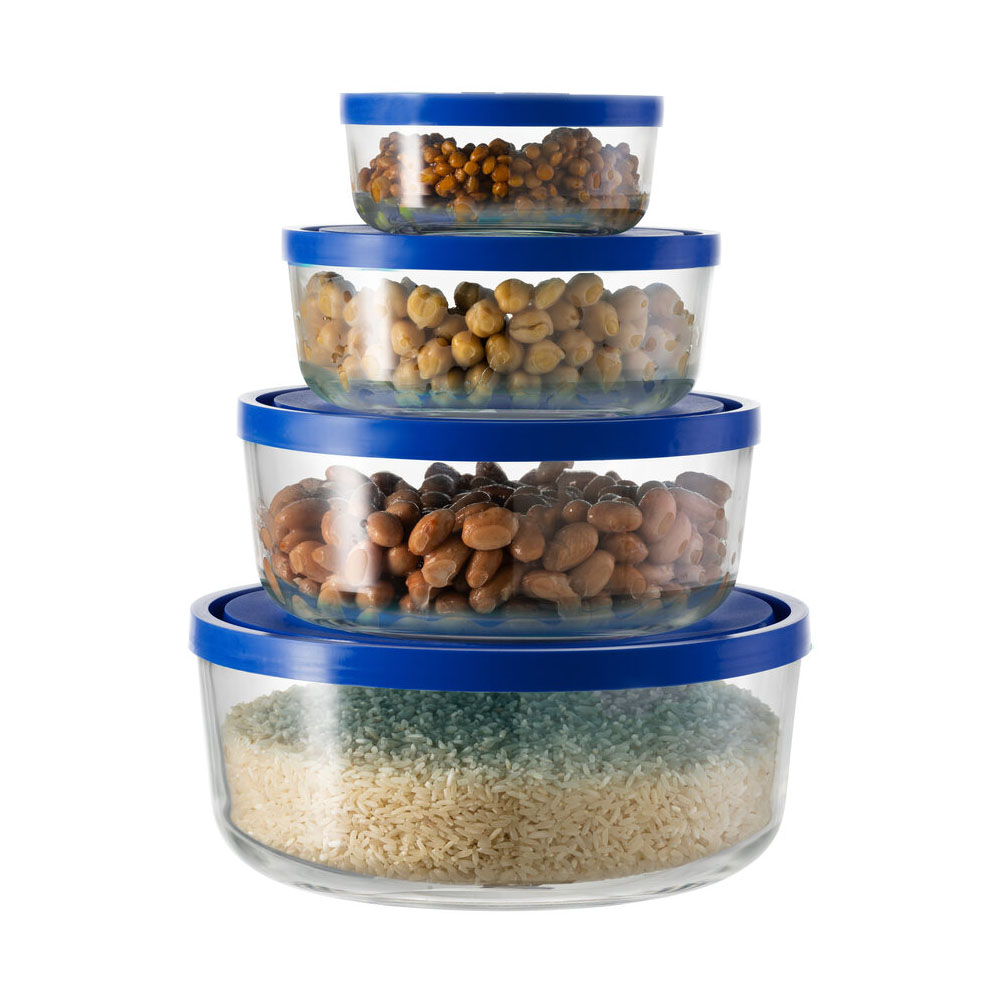Set 4 caserole rotunde "Igloo", cu capac , marca Borgonovo, fabricate in Italia din sticla extra alba.