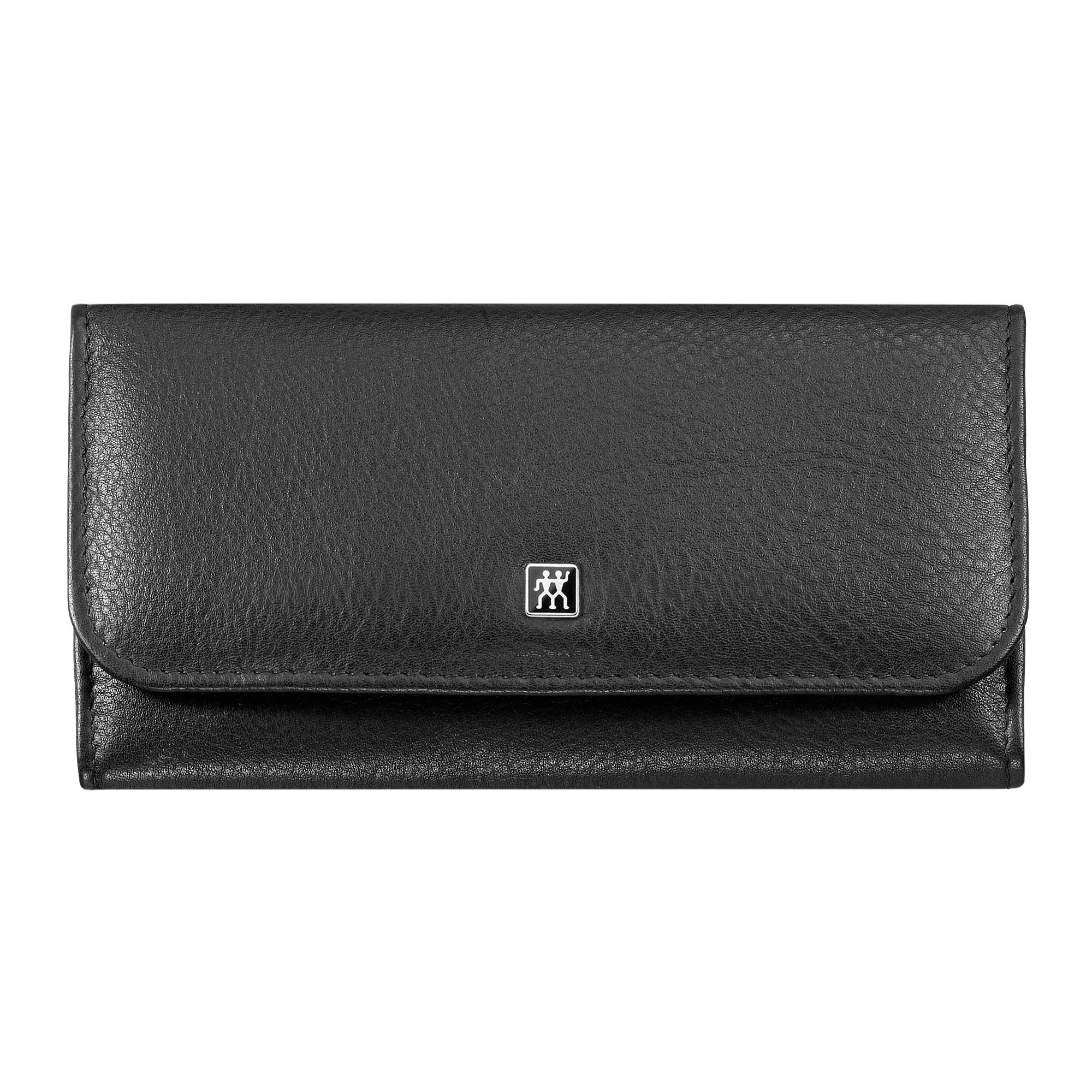 - Etui din piele naturala neagra, cu inchidere cu capse.