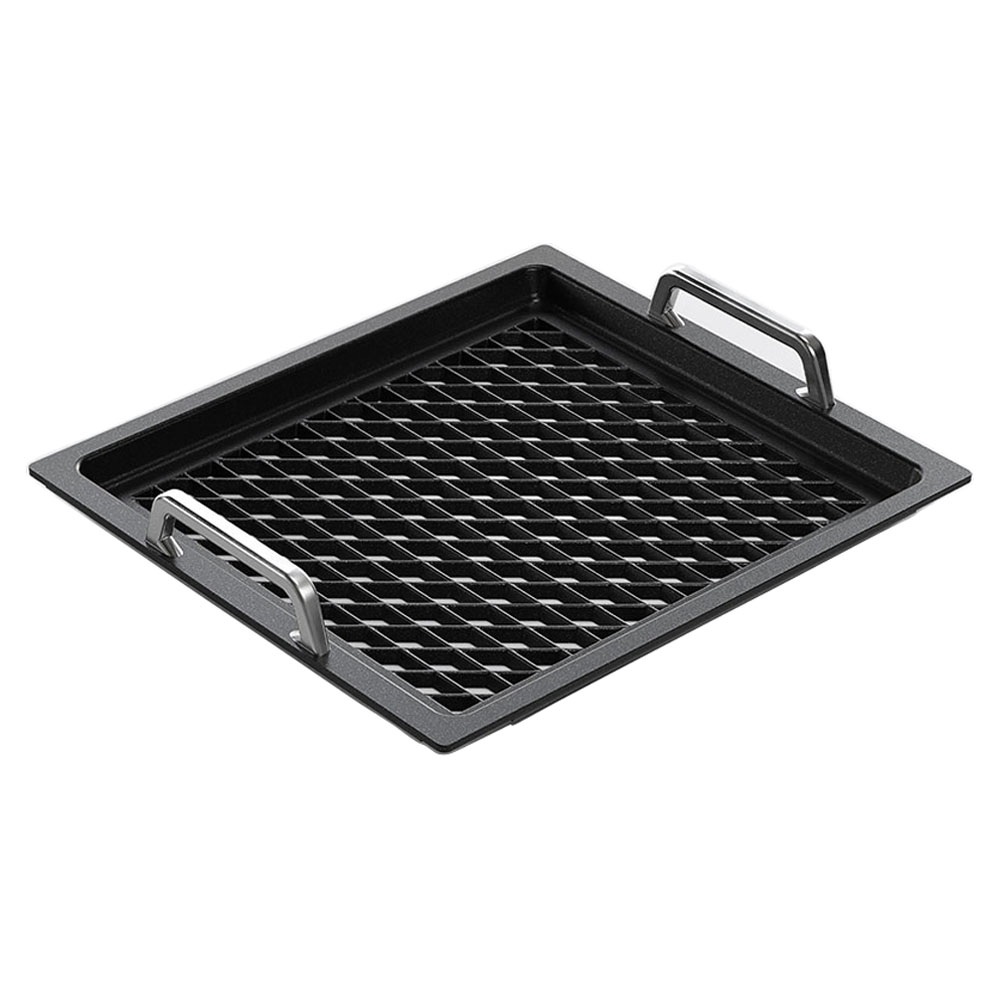 Tava grill perforata GN 2/3, marca AMT Gastroguss, dimensiuni 35,5 x 32,5 cm, inaltime 2 cm, din aluminiu, cu strat antiaderent Lotan®, fabricata in Germania.