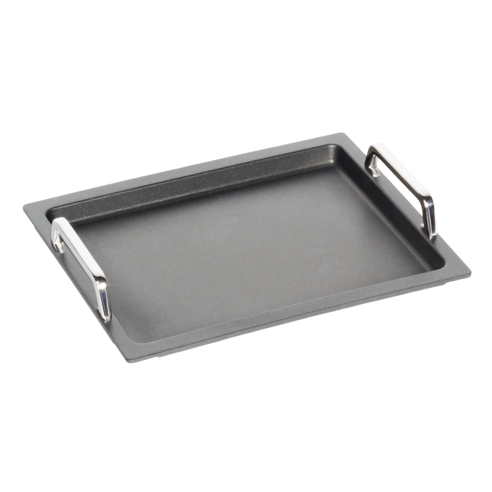 Tava marca AMT Gastroguss, dimensiuni 35,5 x 32,5 cm, inaltime 2 cm, din aluminiu, cu strat antiaderent Lotan®, fabricata in Germania.