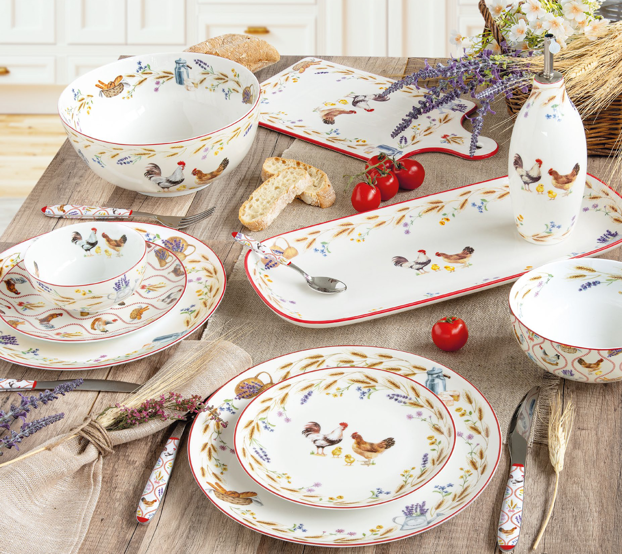Cu un design rustic si elegant, colectia Country Life transforma fiecare masa intr-un moment de veselie, imprimeurile de pe fiecare piesa fiind un exemplu de prospetime si autenticitate.
