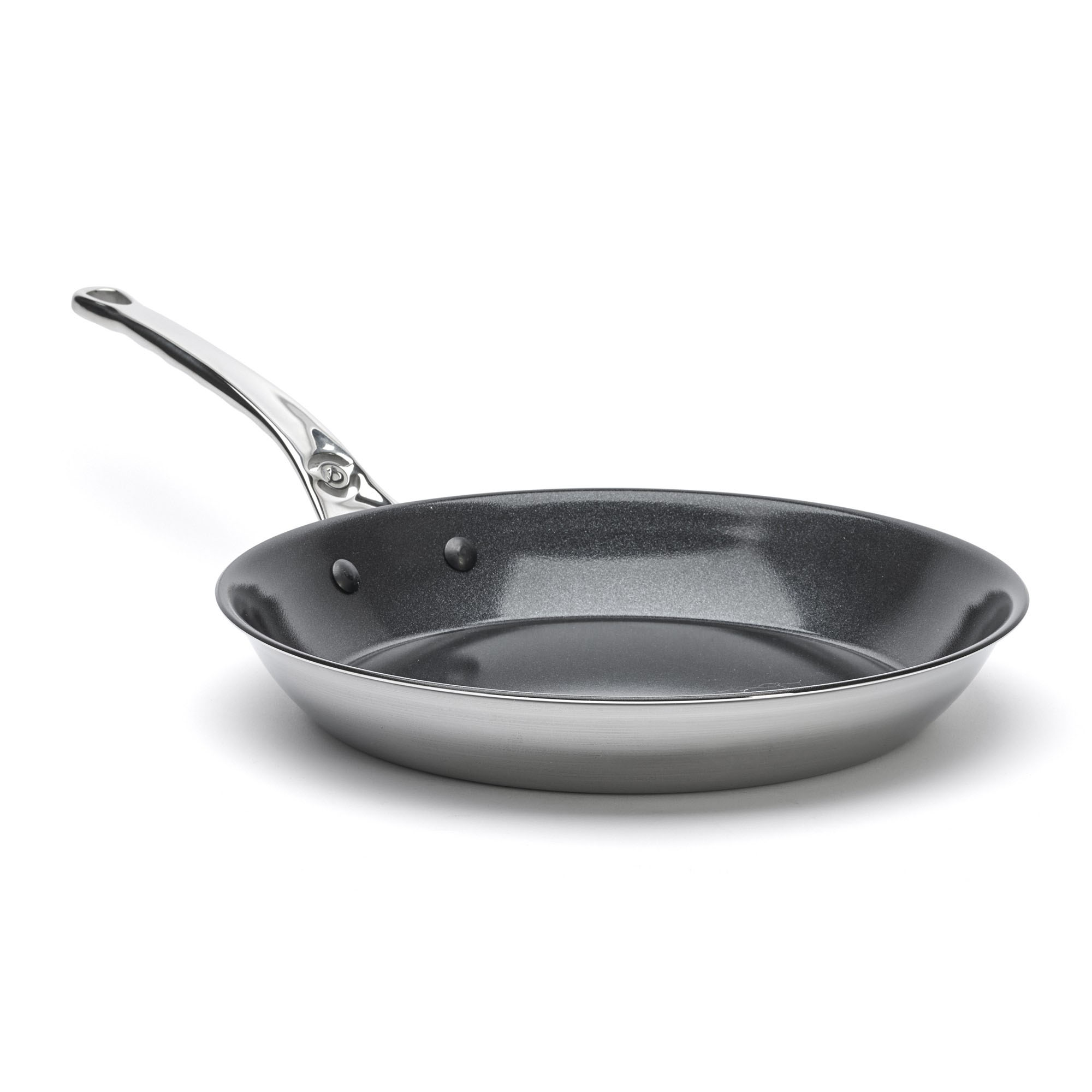 Designul manerului din inox prins cu nituri foarte solide este rezistent, neted, si permite manevrarea tigaii intr-o maniera comoda. Tigaia a fost conceputa in asa fel incat temperatura sa creasca in mod treptat.
