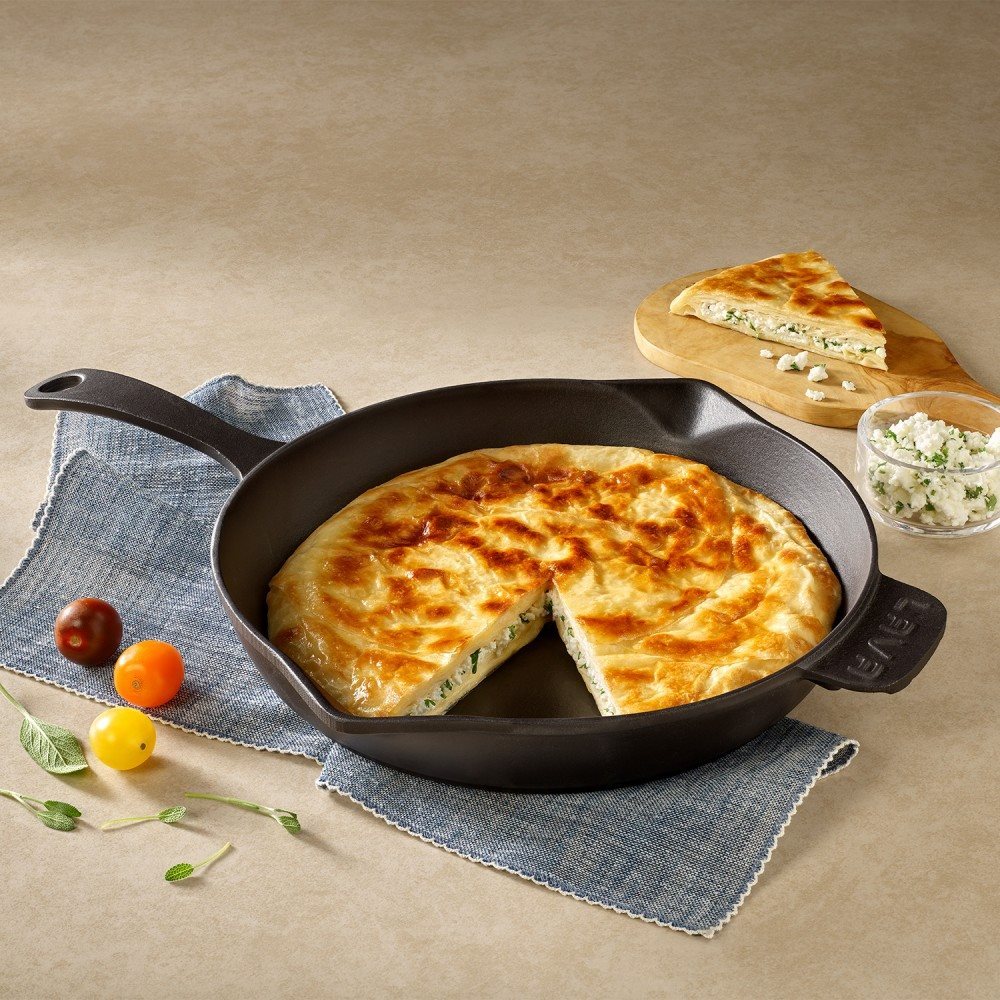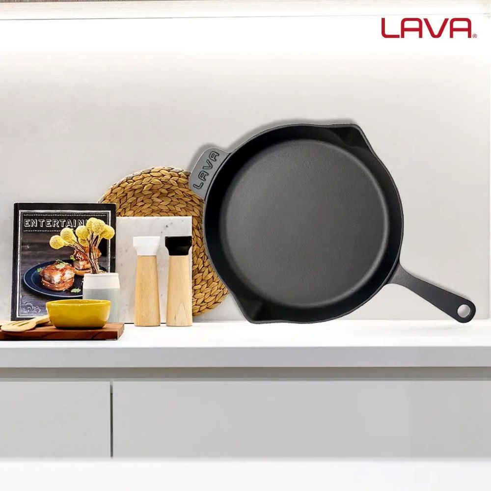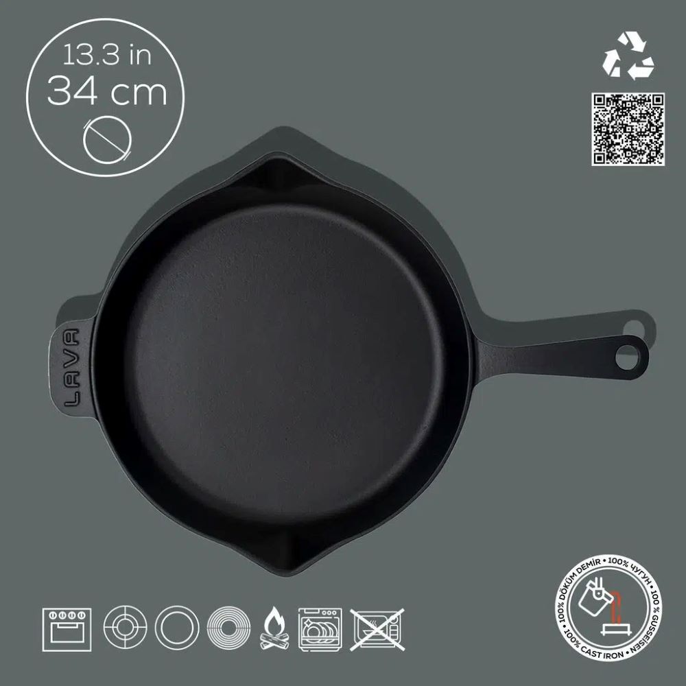 Tigaie rotunda, marca Lava, diametru interior 34 cm, capacitate 4 l, fabricata din fonta.