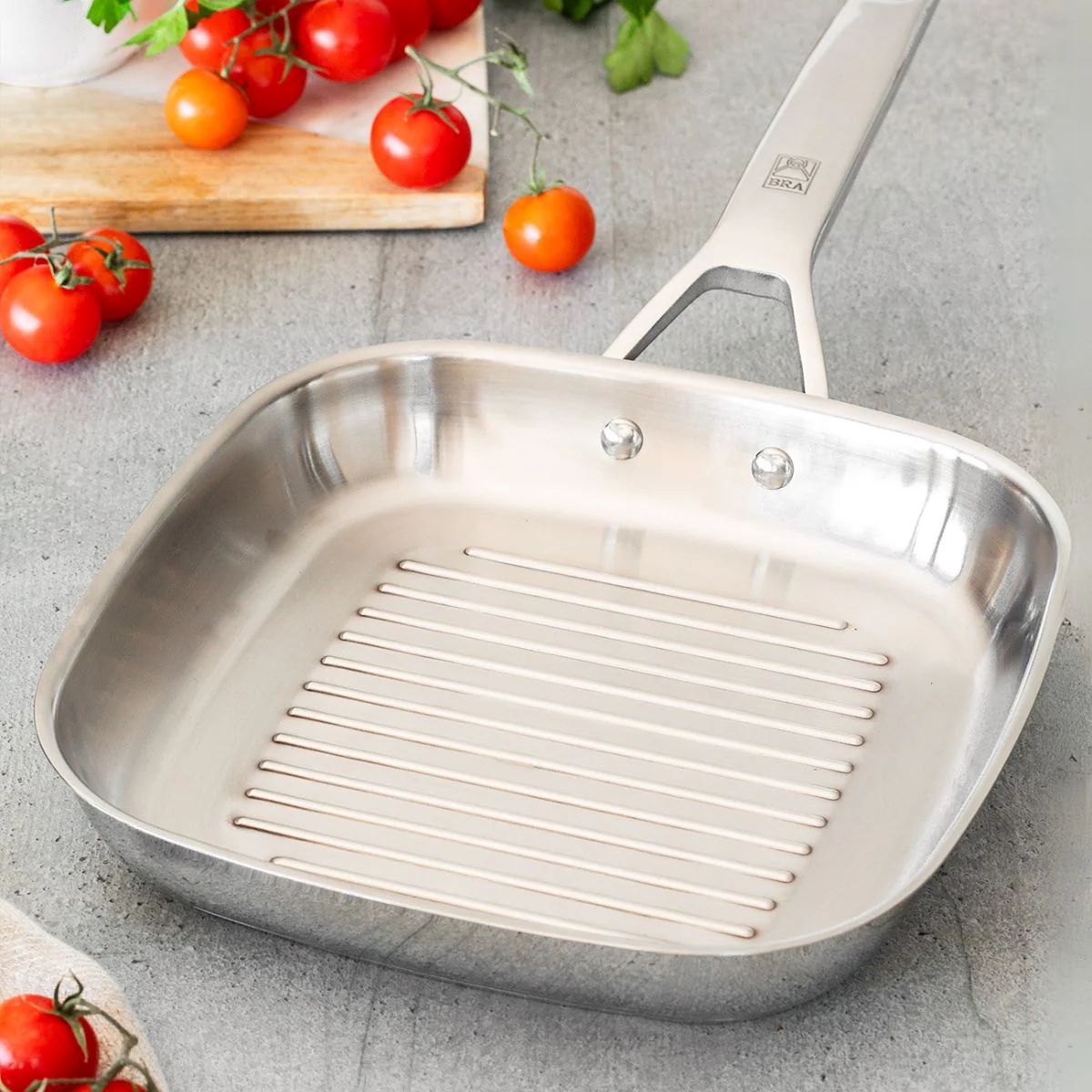 Tigaie grill, fabricata din inox, diametru 28 cm, marca BRA.